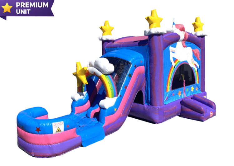 Kids can step inside the spacious bouncing area and jump to their heart's delight, then climb up the interior rock wall and head down the  slide for some summertime or cool days fun! It's a 2-for-1 deal packed into a single unit that simply spells F-U-N.